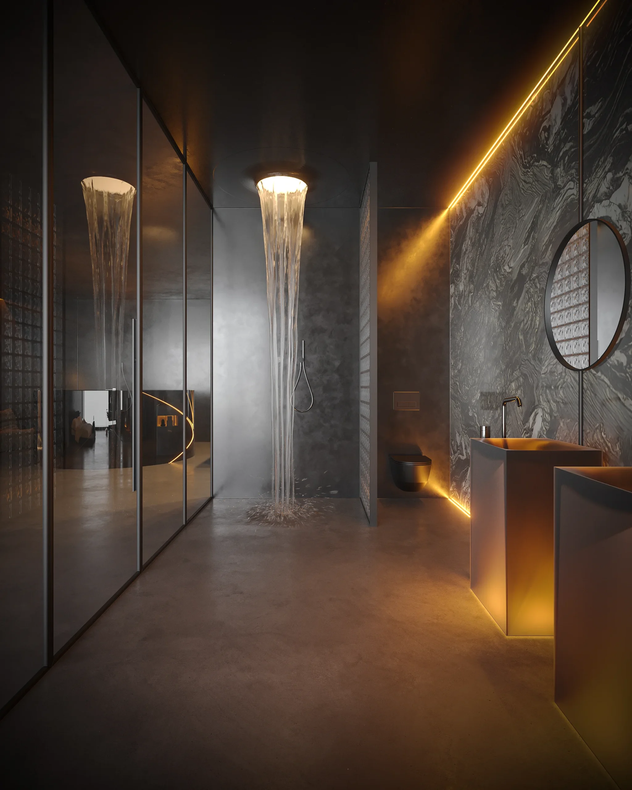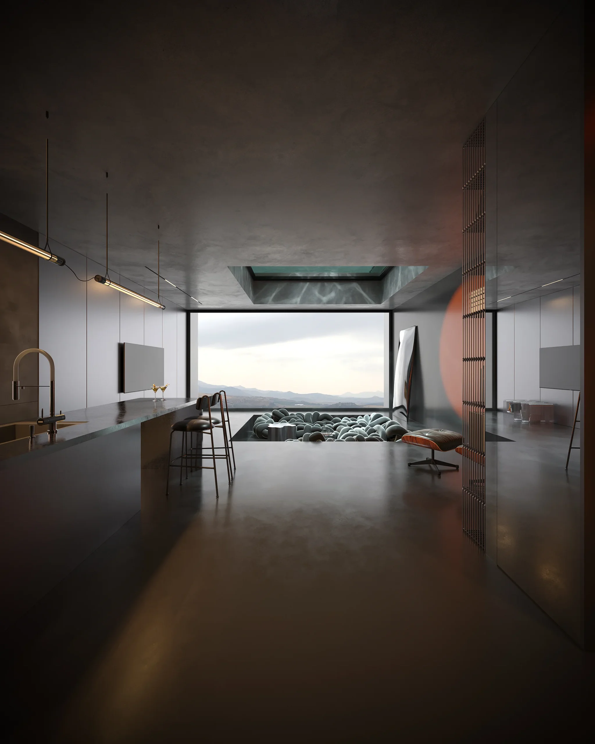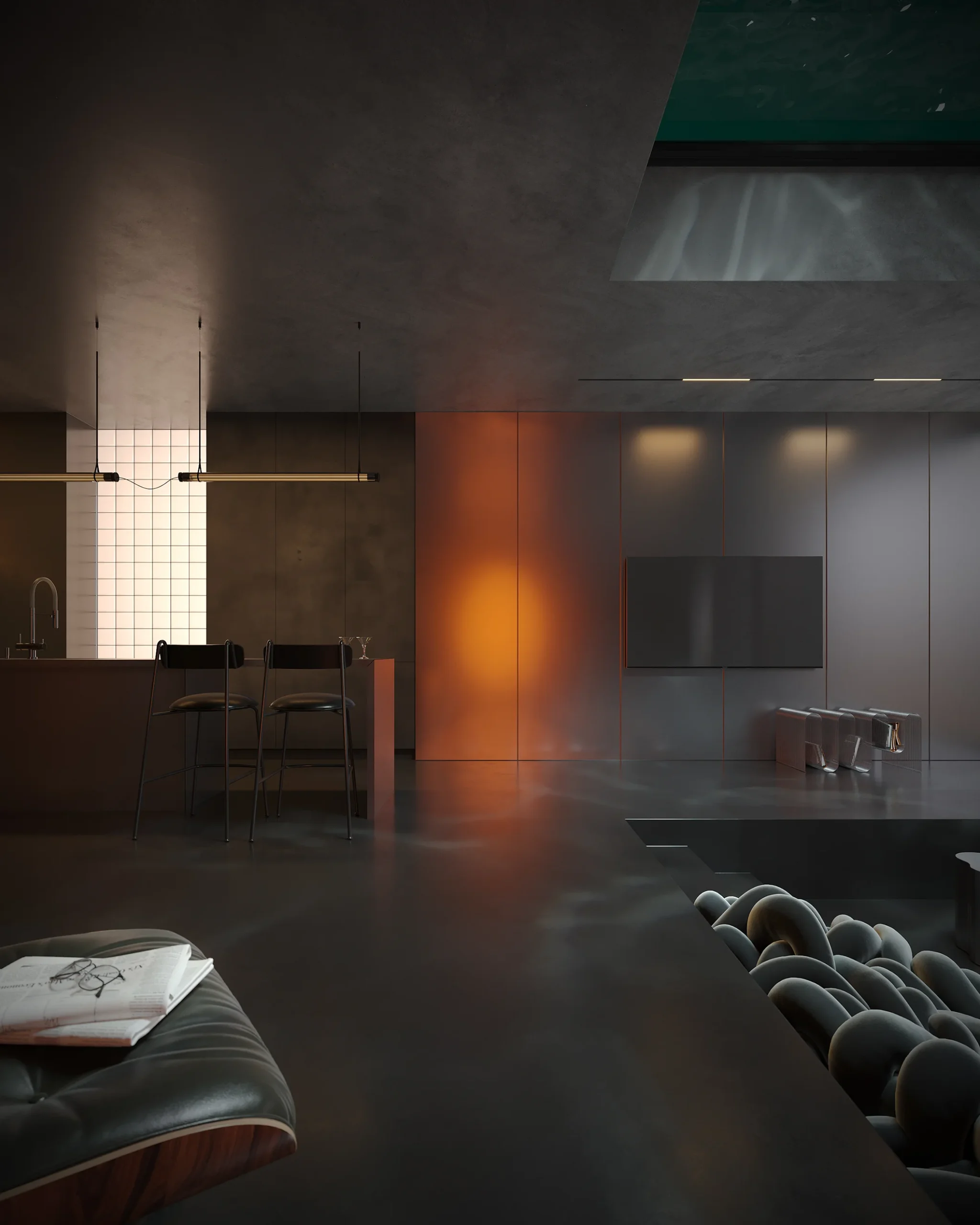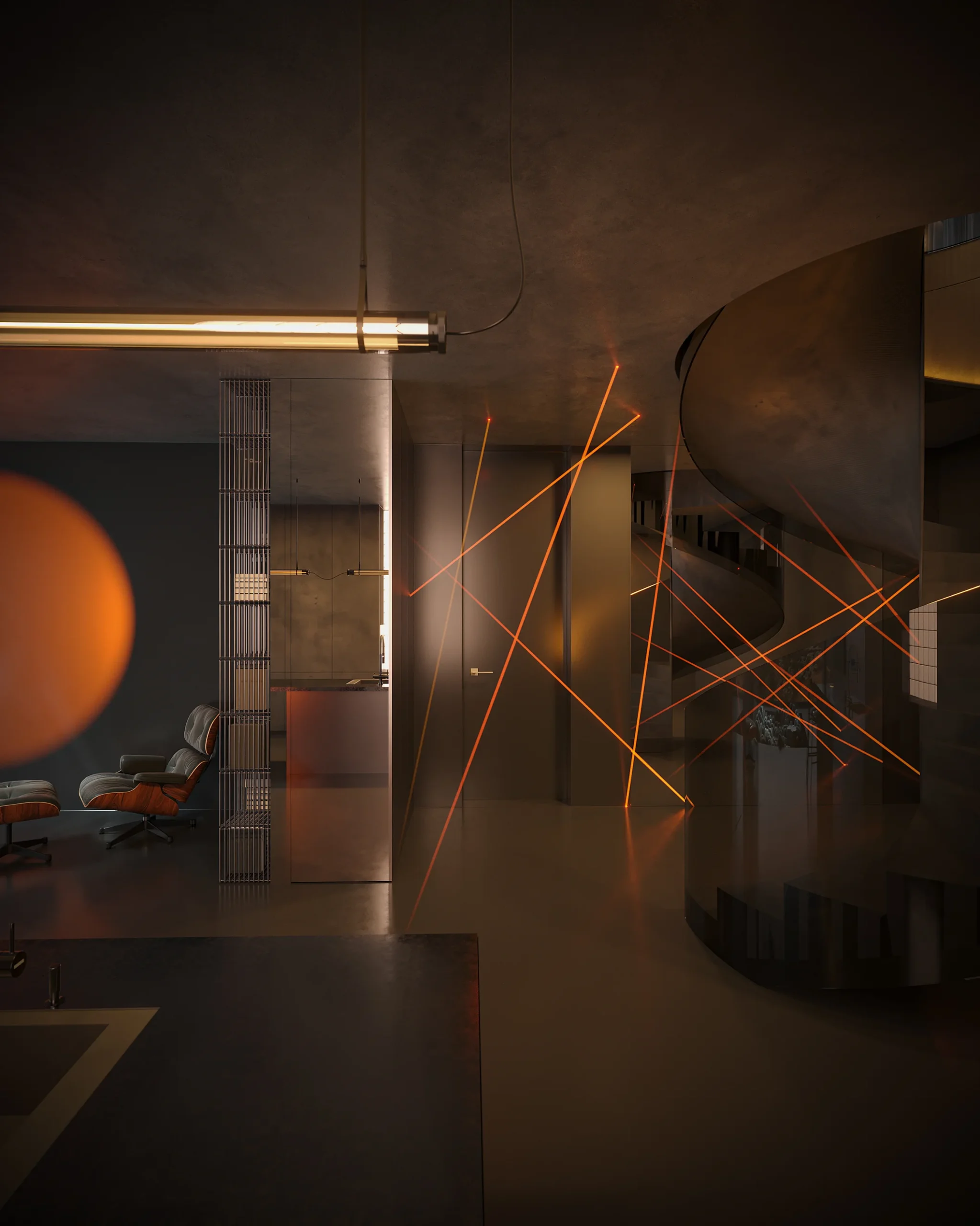 Przestrzeń o silnej, męskiej energii. Surowa, minimalistyczna i perfekcyjnie wyważona. Beton, szkło i światło tworzą scenografię pełną napięcia, w której technologia spotyka się z elegancją.