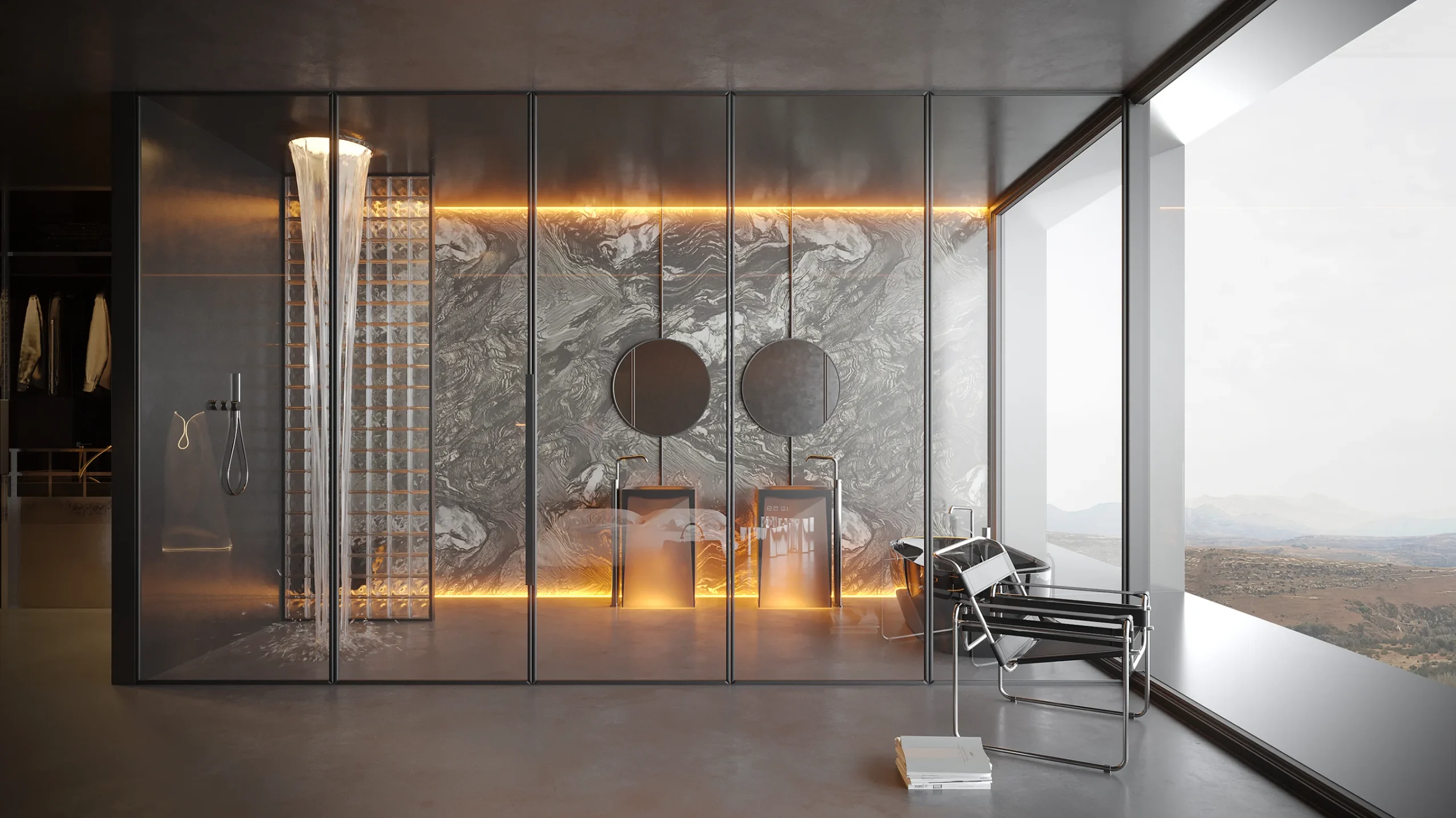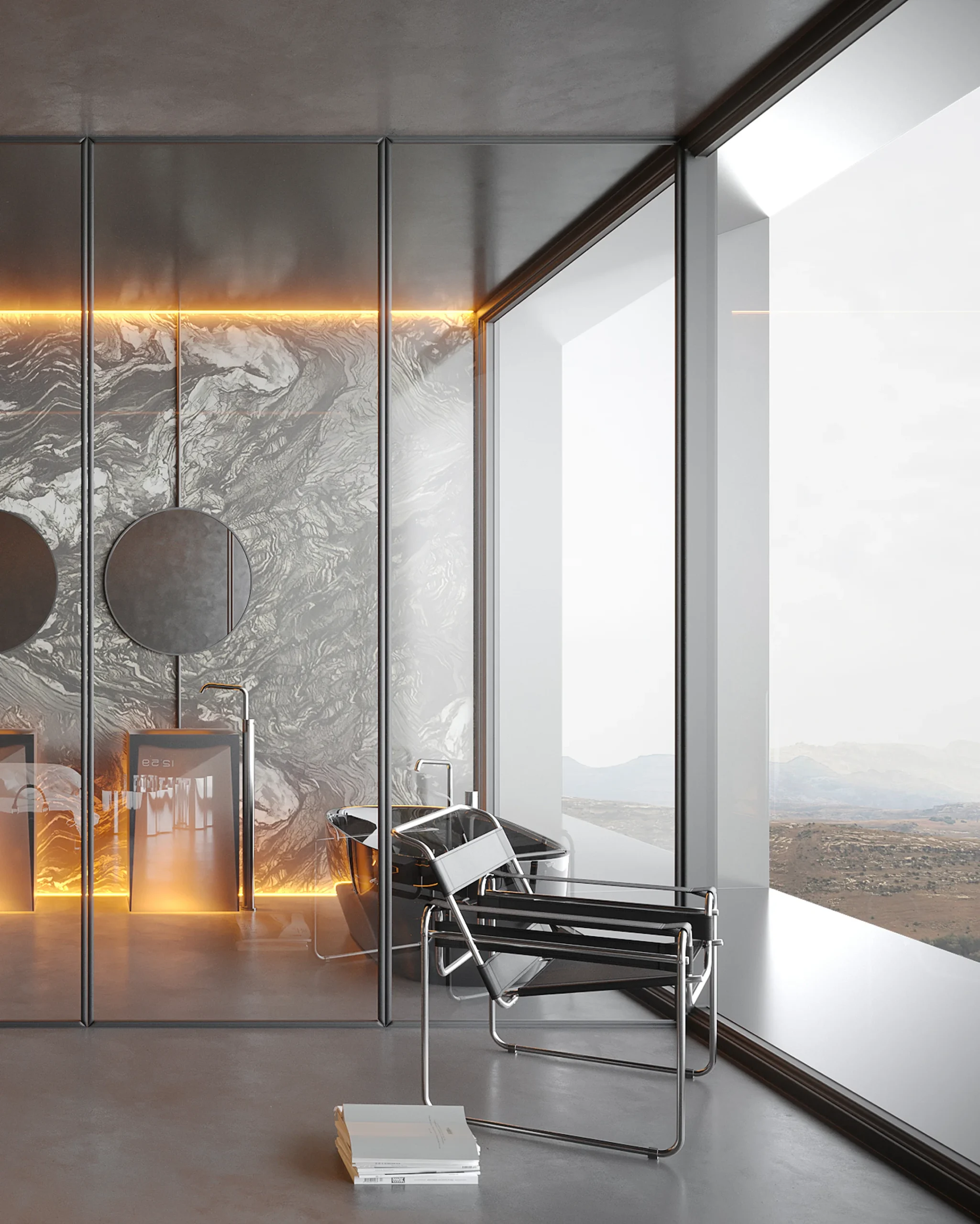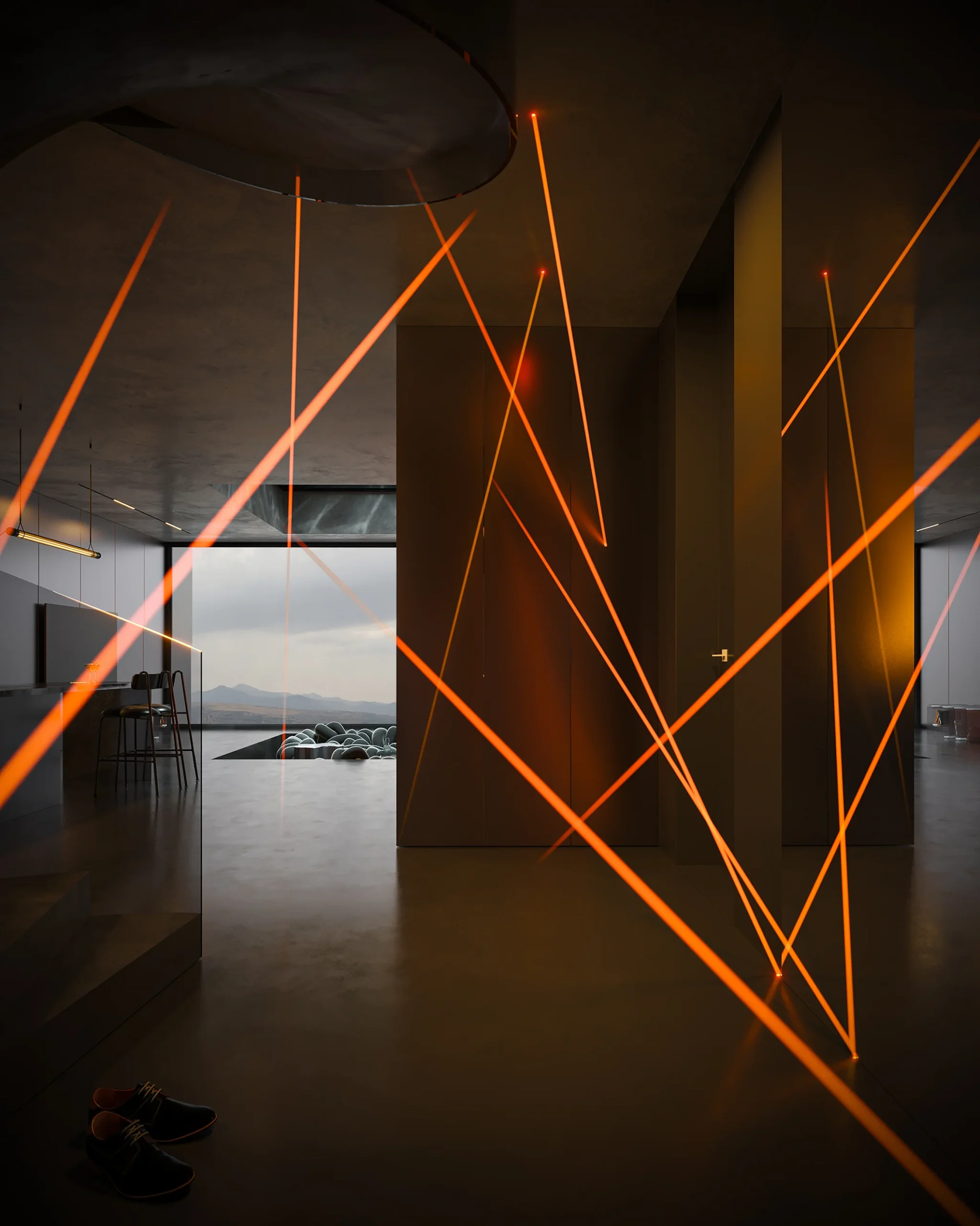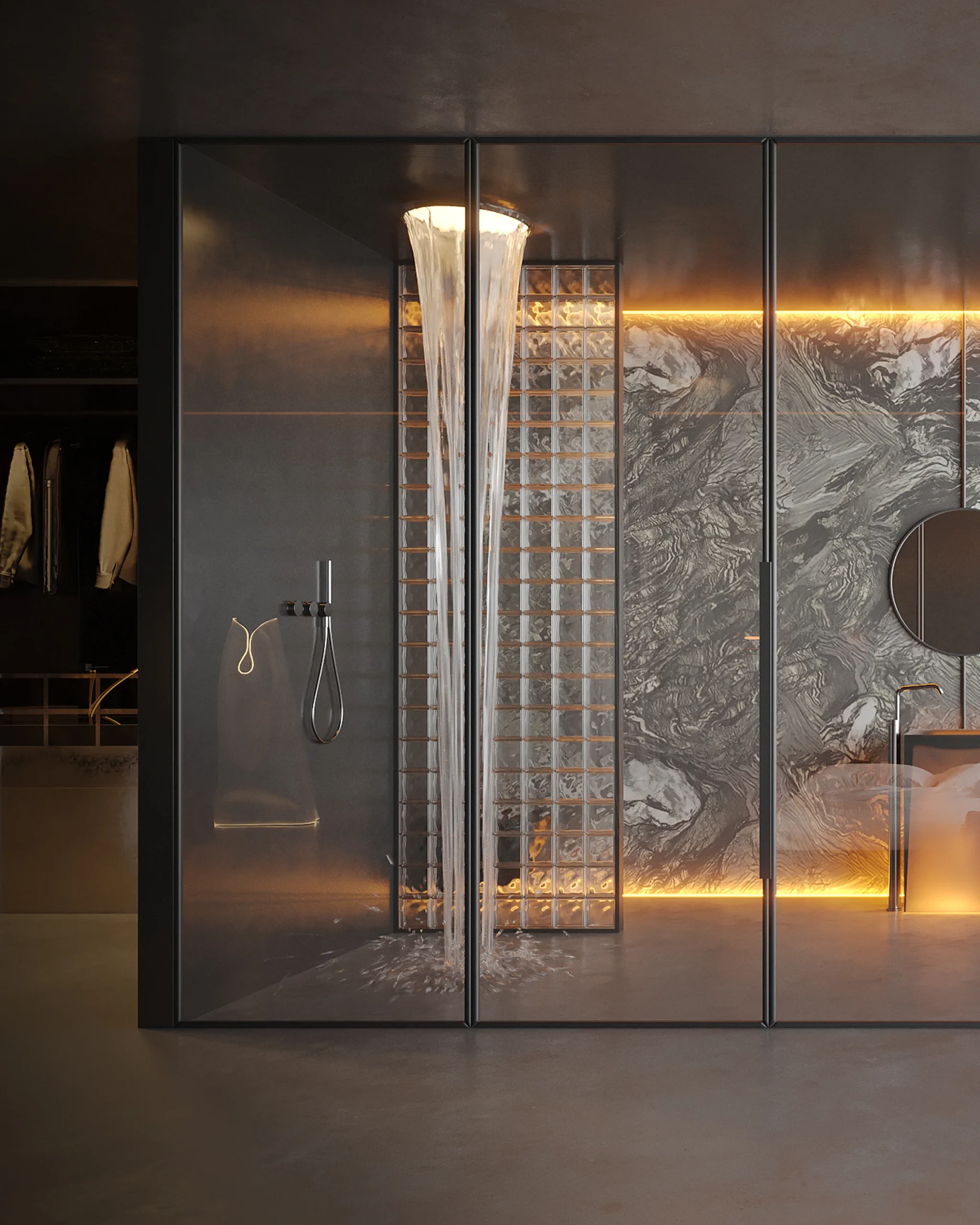 Przestrzeń o silnej, męskiej energii. Surowa, minimalistyczna i perfekcyjnie wyważona. Beton, szkło i światło tworzą scenografię pełną napięcia, w której technologia spotyka się z elegancją.