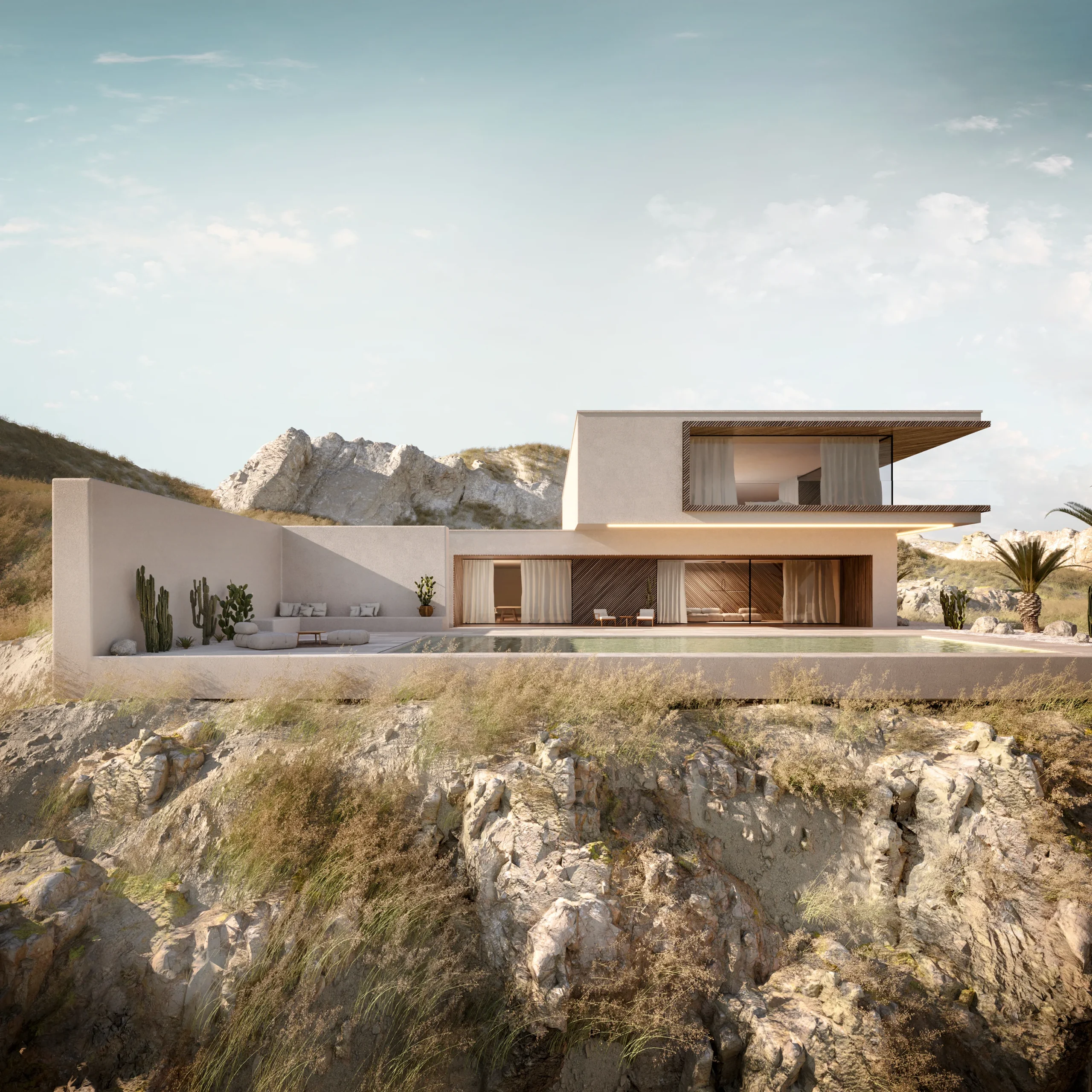 Powstała realizacja pokazuje, jak wizualizacja 3D potrafi uchwycić lekkość lata. Od ciepłych refleksów na wodzie po naturalne faktury i miękkie linie architektury.