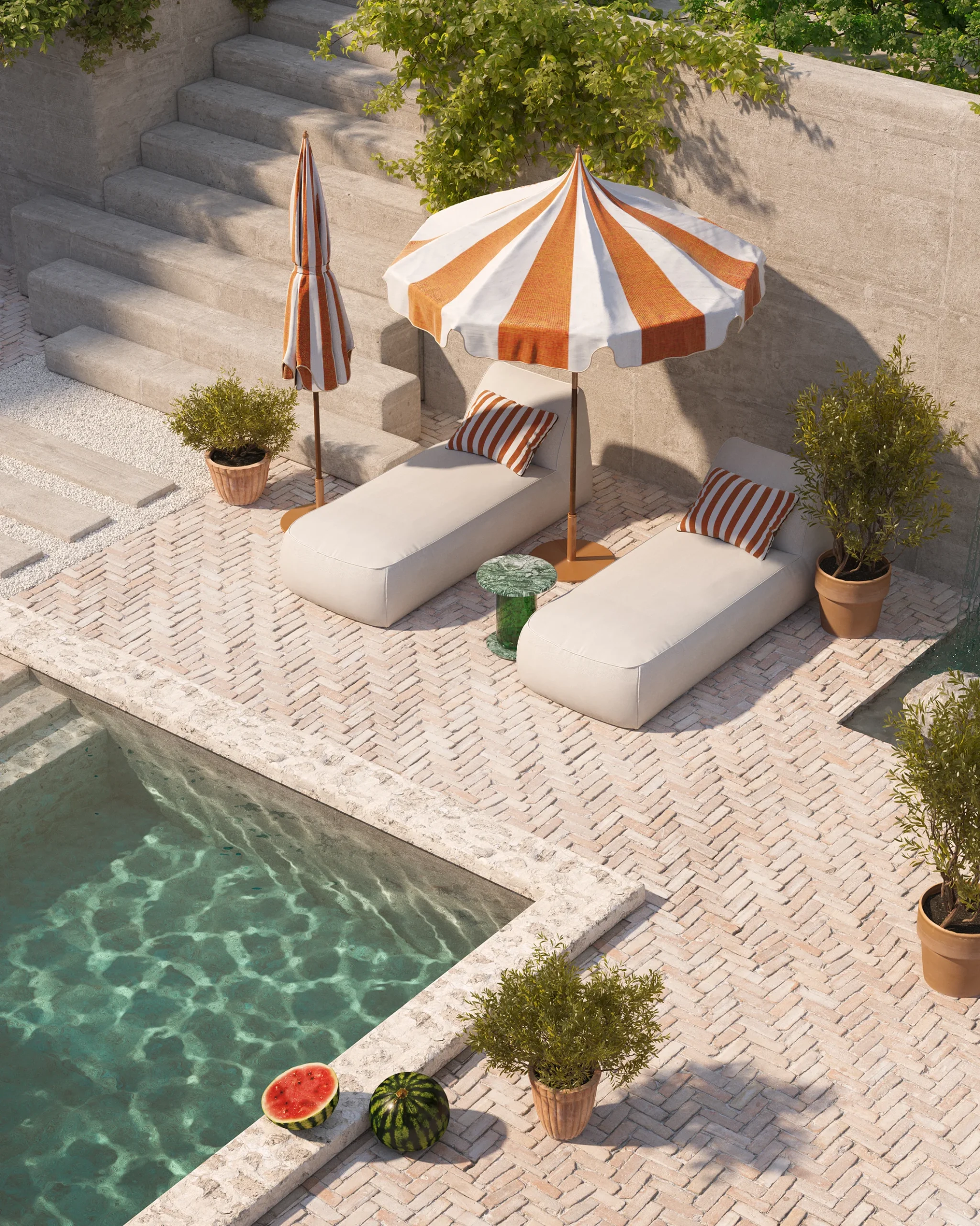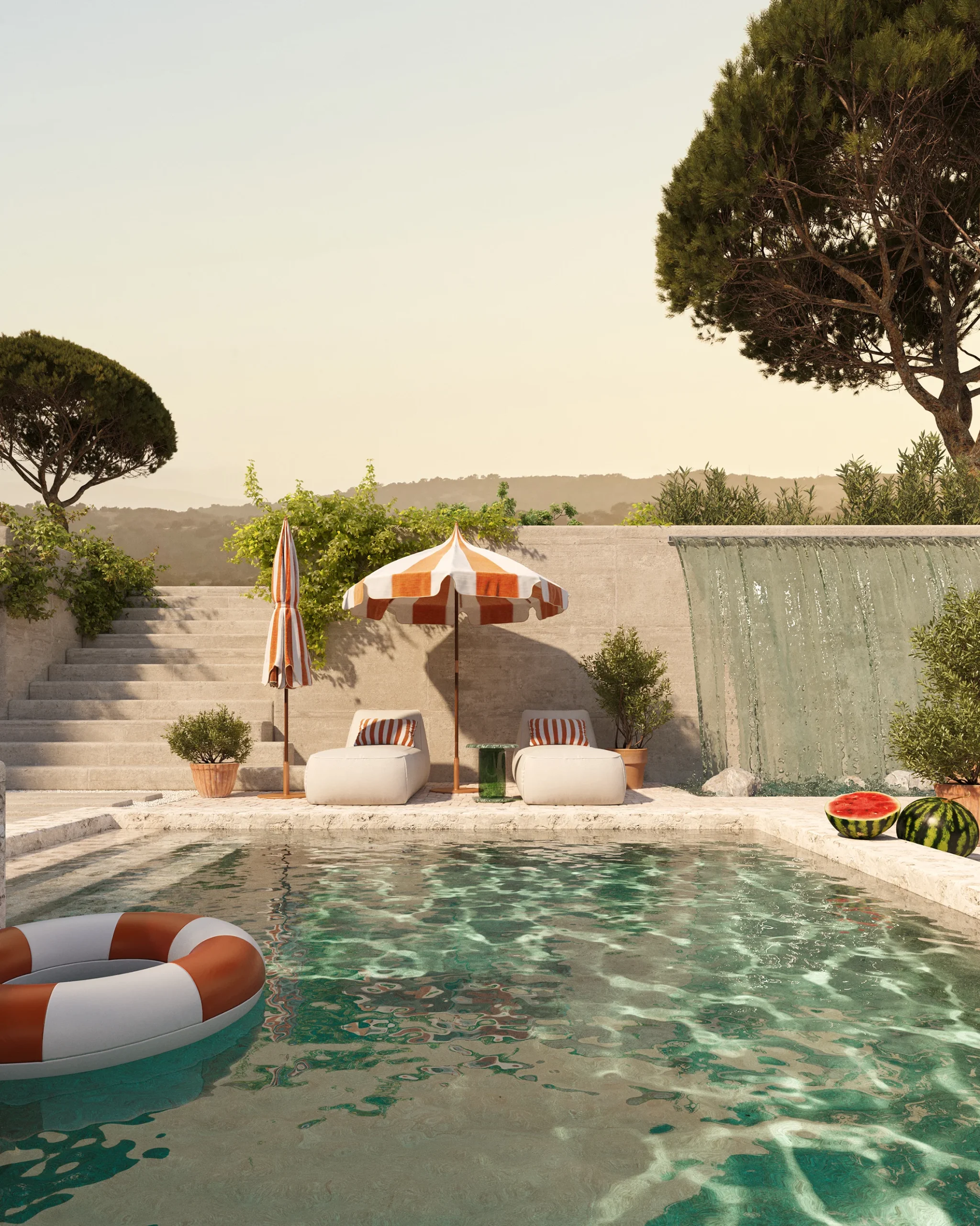 Toscana House to dom zanurzony w ogrodzie, gdzie włoski styl spotyka się z wakacyjną lekkością. Biało-pomarańczowe akcenty i klasyczna forma tworzą przestrzeń pełną słońca i spokoju.